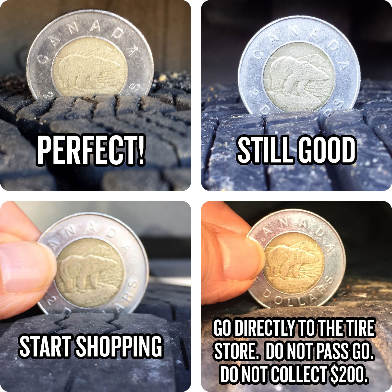 If you don’t know if your tires are ready for a drive use our picture as a tool, and if you are still uncertain go and see a tire professional, if you can get in!