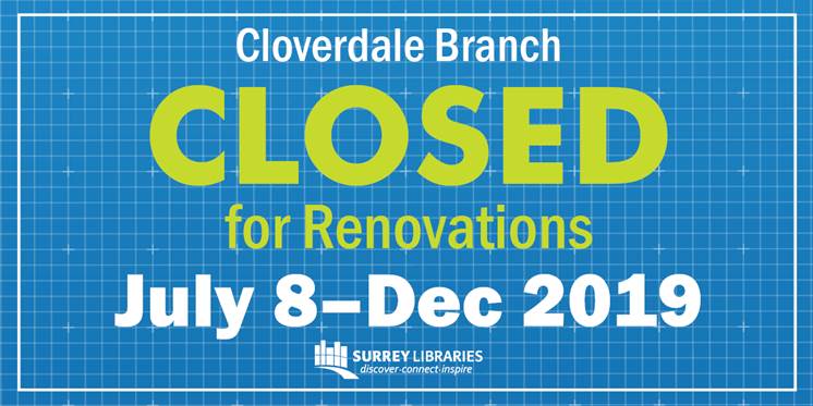 During the renovation, select library services will be available at the Cloverdale Recreation Centre, Monday–Thursday 10am to 8pm, and Friday and Saturday 10:30am to 5pm.