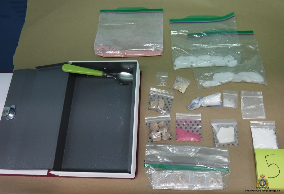 At approximately 4:00 p.m., Chilliwack CRU supported by the Chilliwack Prolific Offender Suppression Team (POST) executed a Controlled Drug and Substance Act (CDSA) search warrant at the residence. Drugs alleged to be methamphetamine, fentanyl, cocaine, heroin, along with cash, drug trafficking paraphernalia, and a BB gun, were seized by police.