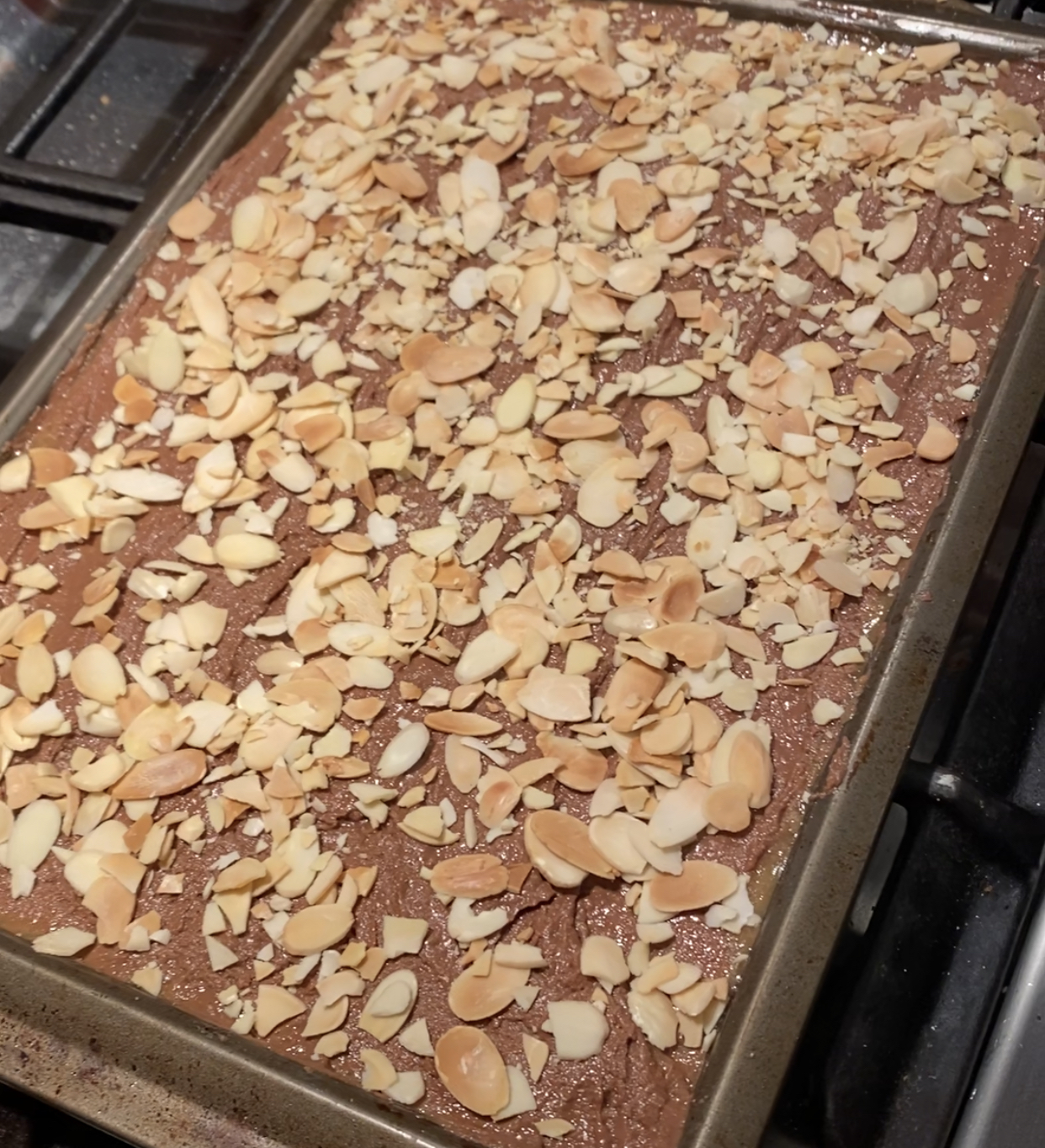 ❄️ Sprinkle Hershey’s chocolate over & spread it all over while it melts