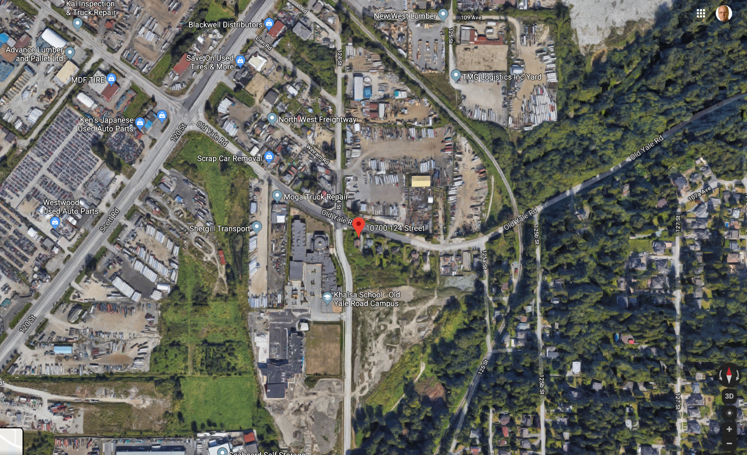 The area is home to a Khalsa school (Old Yale Road campus), truck parking and scrap collectors, along with a small number of homes.