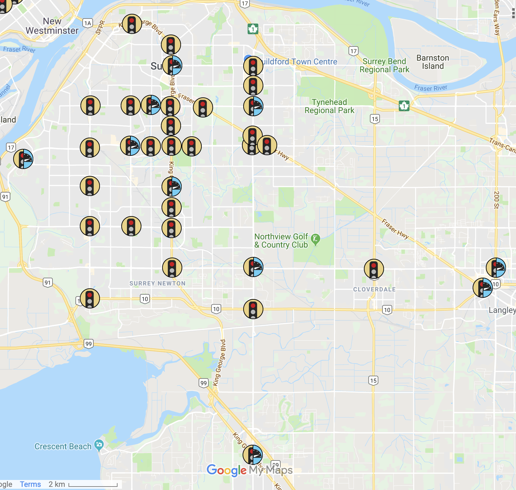 The province announced this month it was installing speed cameras at 35 high-accident intersections in B.C. Seven of those will be in Surrey.