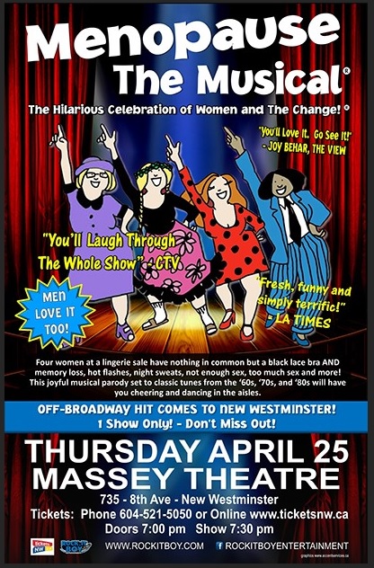 Everyday this week on #TheRidePulseFM, we awarded lucky PULSE FM listeners with a pair of free passes to “Menopause The Musical” happening on April 25th at the Massey Theatre in New Westminster, brought to you by Rockitboy Entertainment!