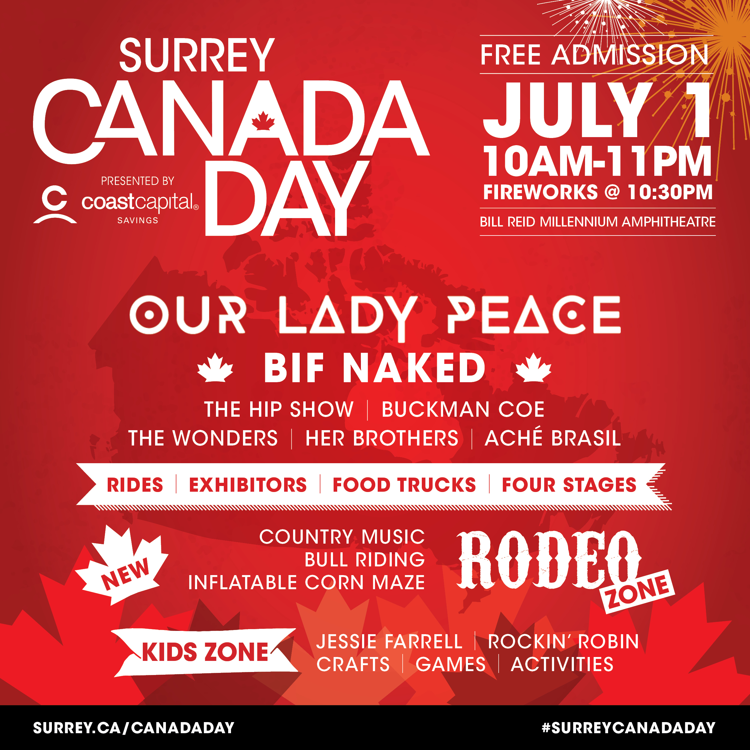 The City of Surrey has announced their headliners for the Canada Day Celebrations on July 1st at the Bill Reid Millennium Ampitheatre in Cloverdale.