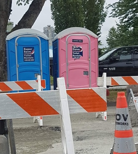 The other day I was driving through Vancouver when I looked to my right and saw a bright pink ‘Ladies Only’ porta potty at a construction site.