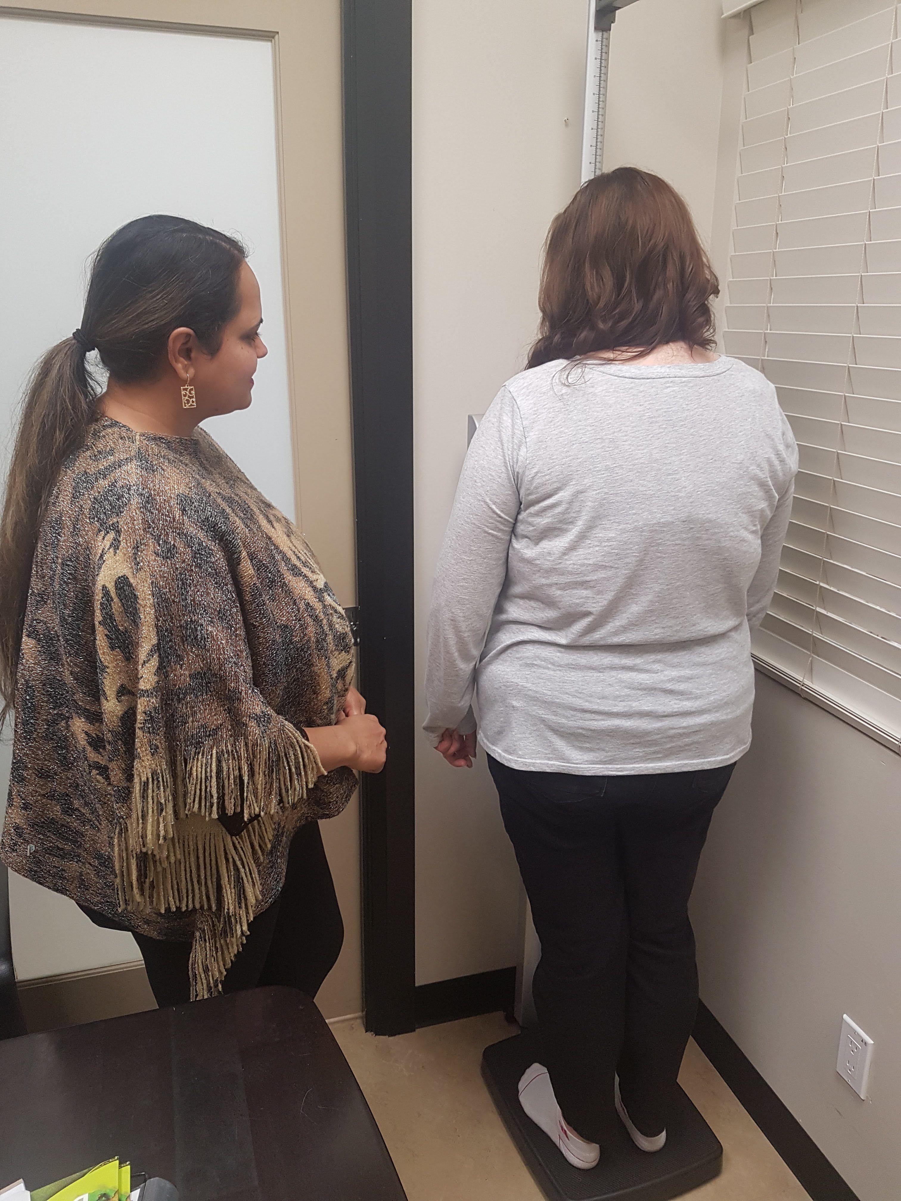 Yvonne has weekly weigh-ins where her body mass index is weighed along with her general weight to keep track of her progress.