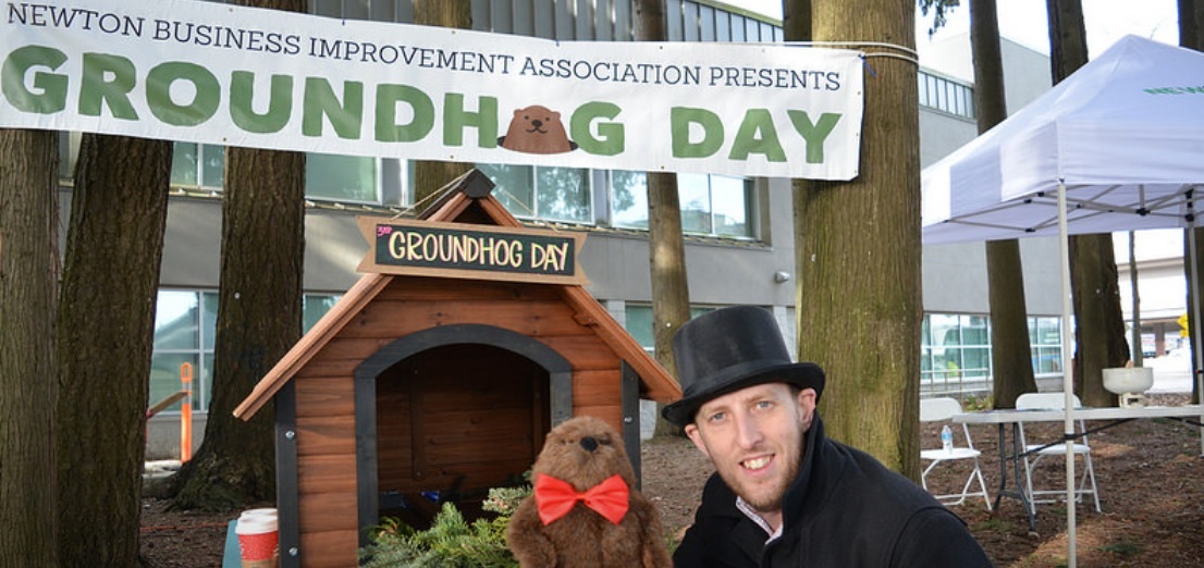 The Newton BIA is hosting their 4th annual Groundhog Day Celebration the following day, Saturday, February 3 10am-1pm at the Save-on-Foods Underground, 7320 King George Blvd, Surrey.