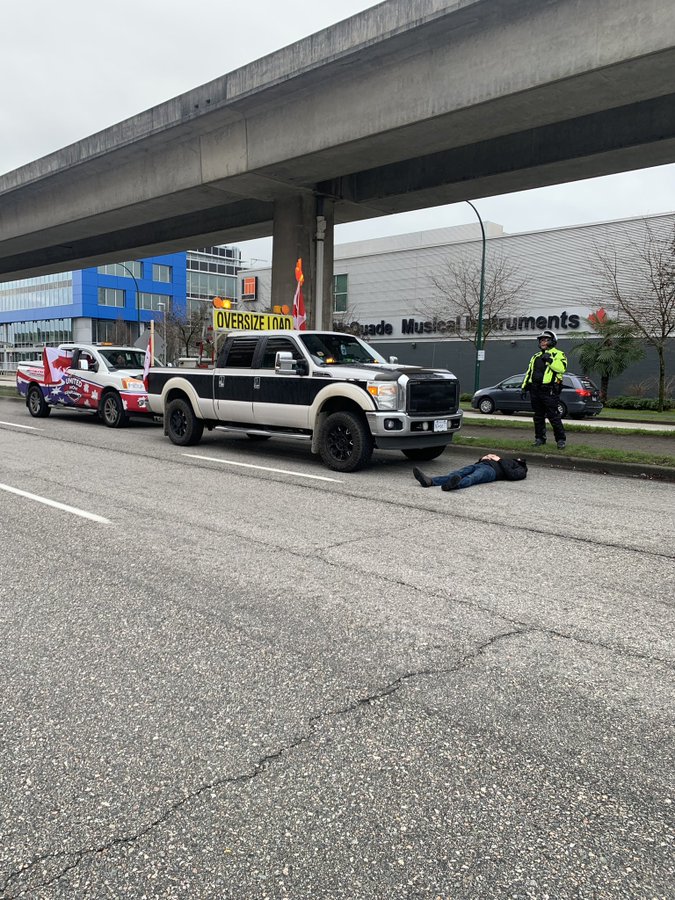 Five people were arrested as the anti-vaccine mandate trucker convoy descended on Vancouver Saturday and was met with counter-protesters. According to Vancouver police, they received “numerous reports of rocks and eggs being thrown, cars being kicked, and nails being strewn on roadways” as the trucker convoy made its way downtown.