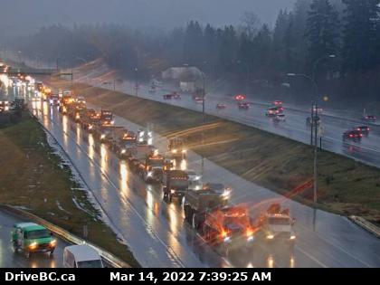 A vehicle protest along Highway 1 is slowing traffic headed west from Surrey across the Port Mann Bridge into Coquitlam. A long line of vehicles, including many trucks, has been slowly moving its way along the major route, affecting traffic as of 176 Street. Images show the lineup of mostly big rigs slowing commuters behind them. Word is that the vehicles are turning off at the Brunette exit. It’s unclear where exactly the protesters are stopping. What exactly the protest is about is unclear at this time, though there are suggestions the demonstrators are angry about spiking gas prices, which hit $2.149 last week, shattering previous records. You can take Fraser Highway to the Pattullo Bridge as an alternate route.