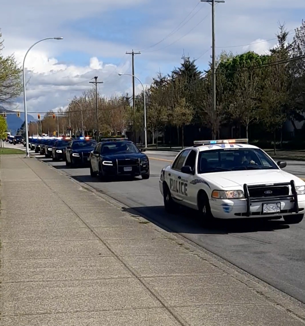 2. Guildford was a sea of red and blue Thursday morning with hundreds of RCMP and first responders taking part in a motorcade to honour Constable Heidi Stevenson and the 21 other shooting victims killed in Nova Scotia.