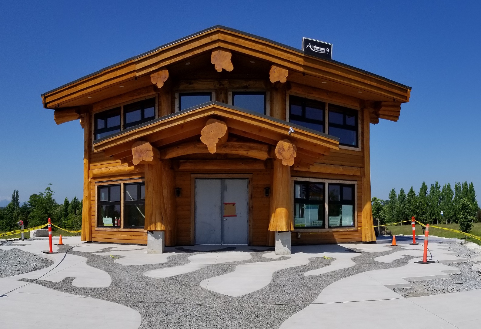 The new two-storey, one hundred square meter footprint building – which can be seen from the 21200 block of Fraser Highway – features a distinct unmilled log-post and beam design with cedar siding and a green roof. It will house desk space for the Arboretum & Botanical Society of Langley and other volunteer organizations that will operate programs in the park or contribute to its maintenance. The building will also feature a series of interpretive panels and interactive displays to educate visitors on the natural environment and sustainable initiatives. The entrance plaza was designed and constructed with seating and stunning views of Derek Doubleday Arboretum.