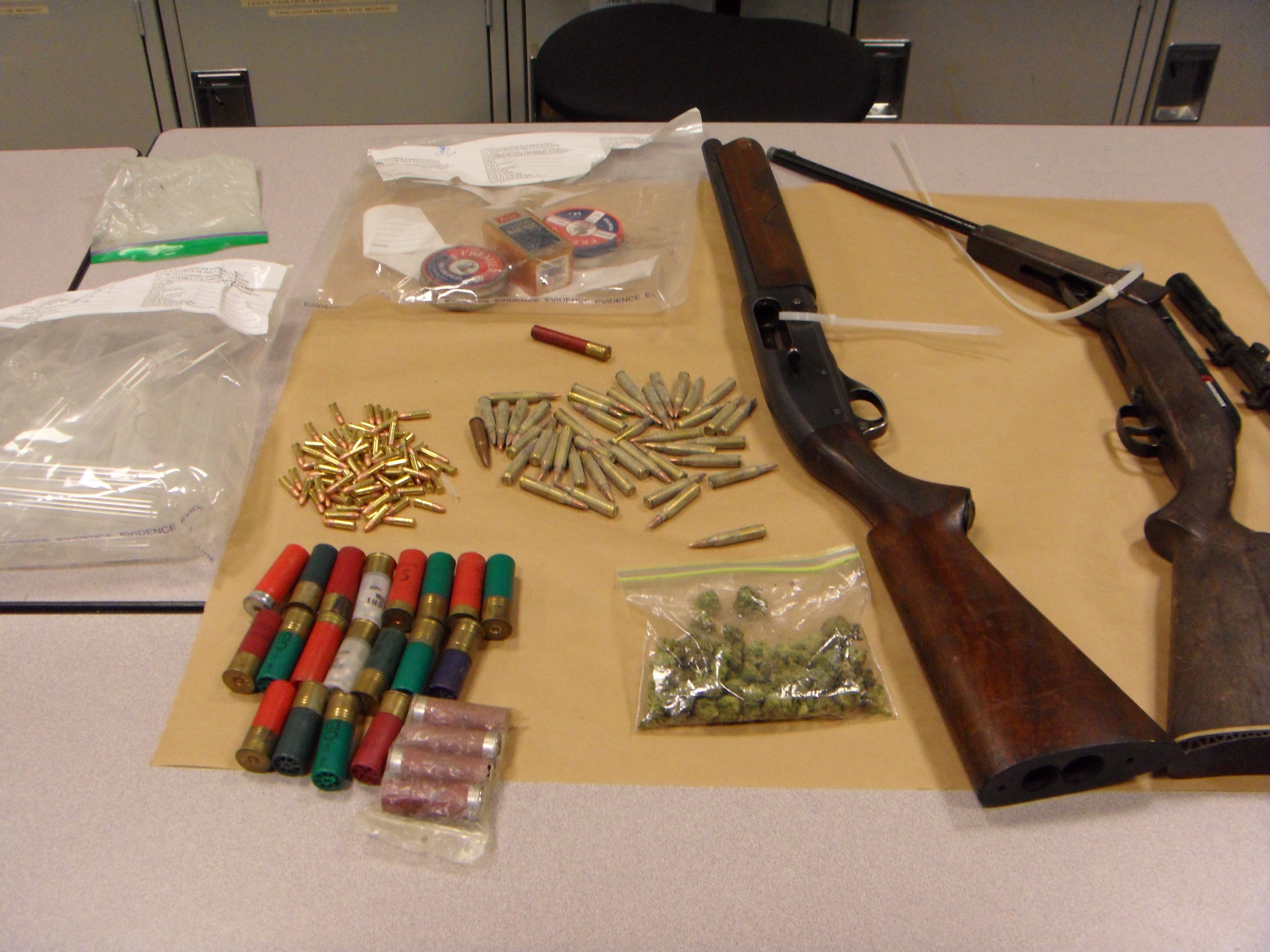 · various ammunition, including approximately 100 carbine rounds, 25 shotgun shells and 22 caliber rifle rounds