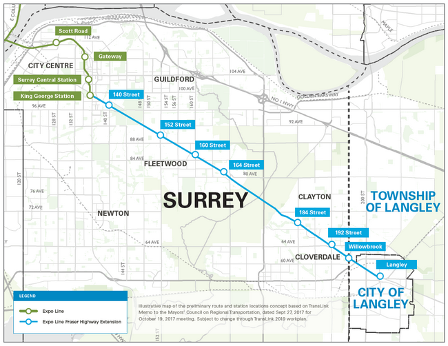 The recommendation right now is to build to Fleetwood, and save the Langley extension when funds are available.