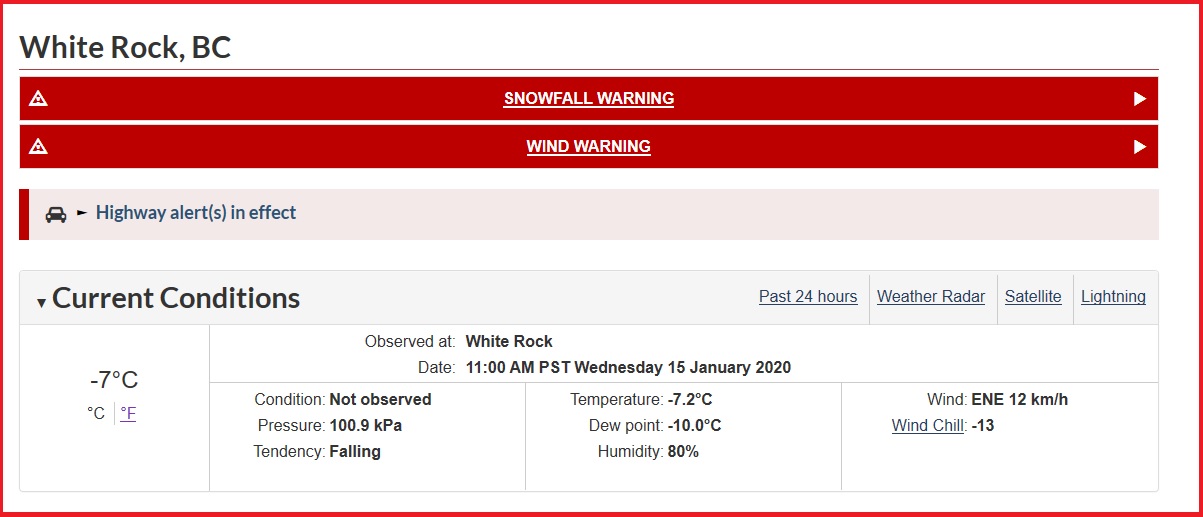Environment Canada has issued BOTH a Snowfall Warning & Wind Warning for tonight (Jan 15 2020) for Metro Vancouver, including areas like Surrey and Langley.
