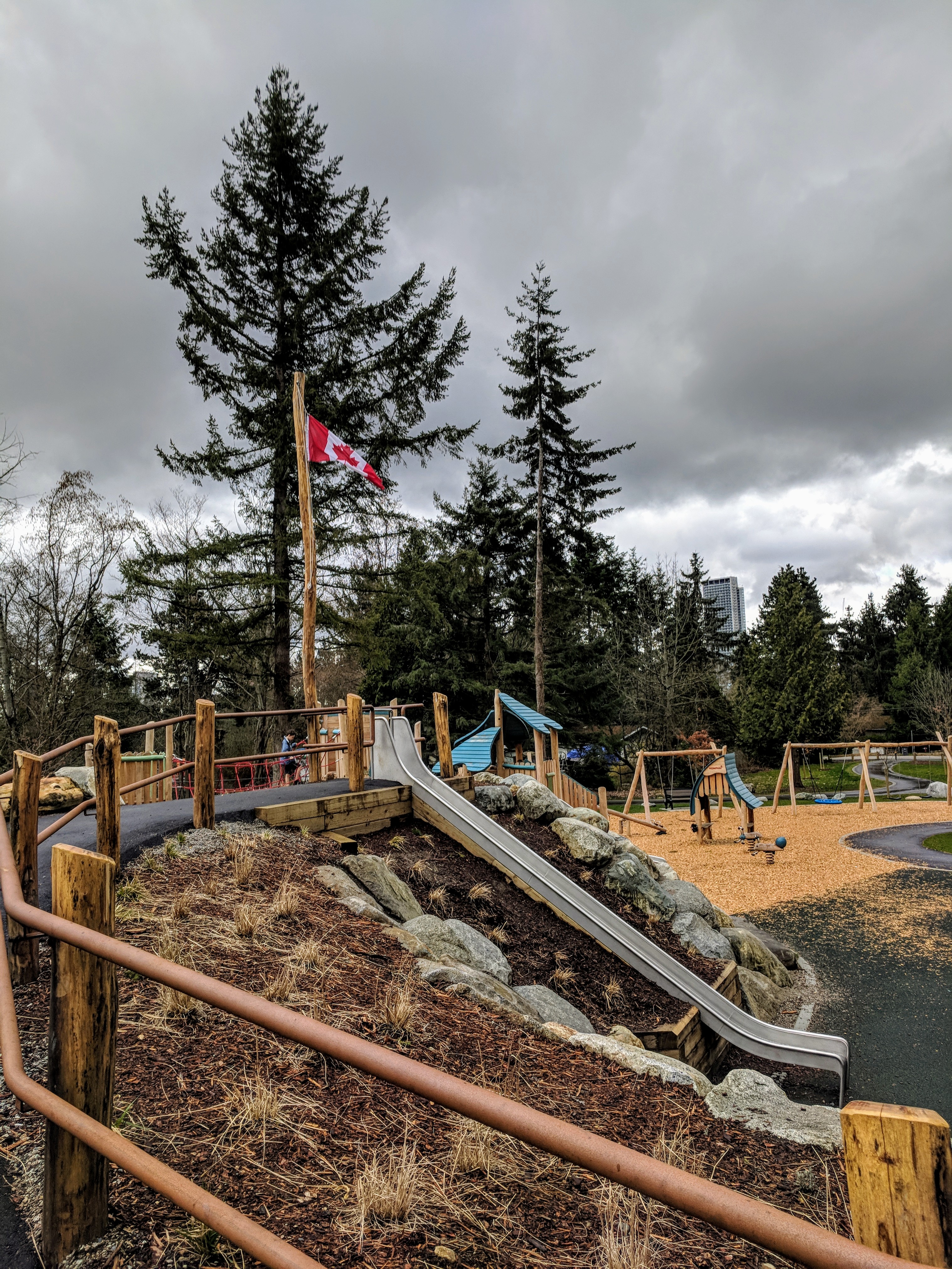 When appointments took us to the City Centre of Surrey, I did a little research to find something new for us to try out. We visited the new Forsyth Park at 10632 139 St in Surrey. This is an area in a major transition with lots of construction around it! The park was completed in 2017.