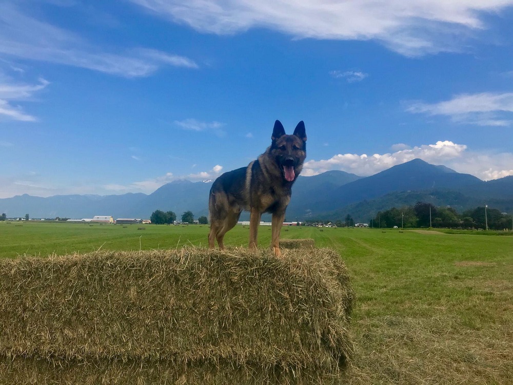 Police service dog GRIFF immediately began following a track of human scent from the abandoned vehicle to the 7600-block of Industrial Way where a 33-year-old man from Hope was located in a cedar hedge and taken into custody. The suspect was released from custody pending a court date in October 2019.