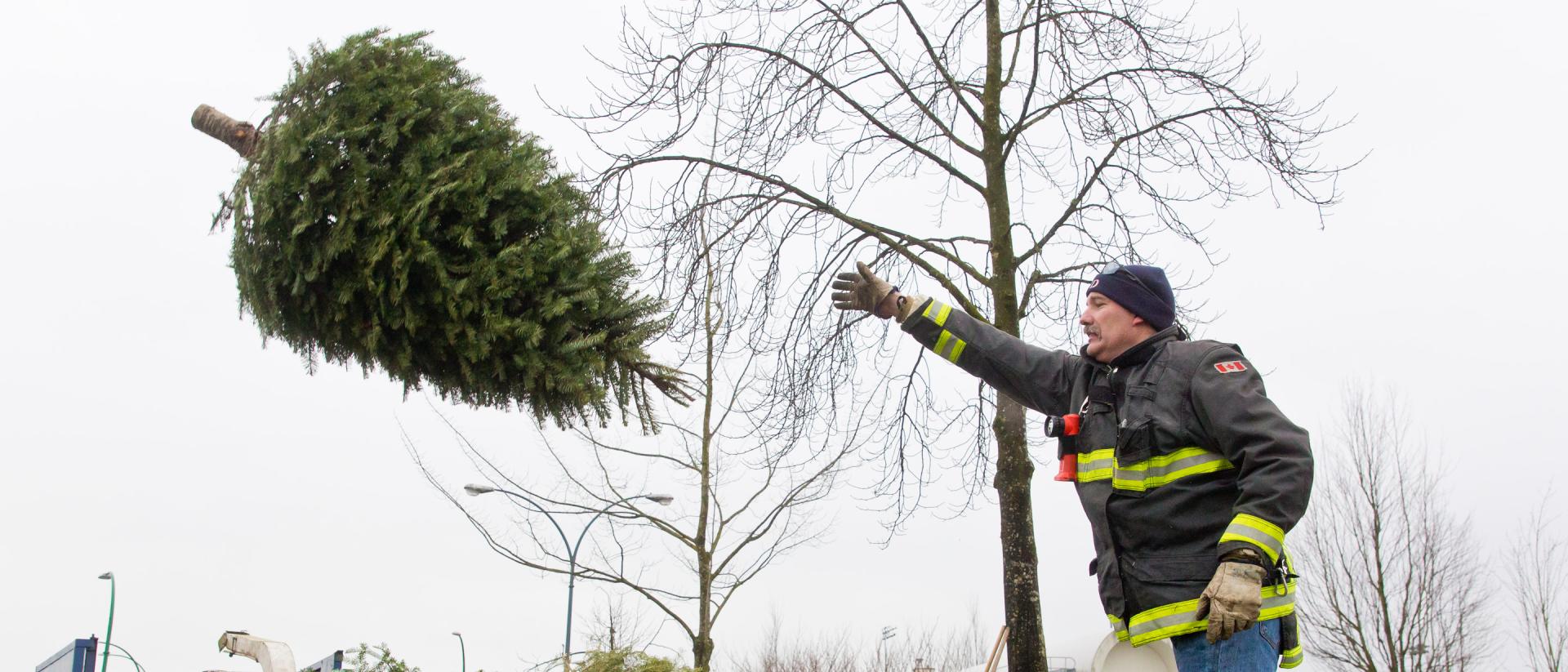 Since 1994, Surrey Fire Fighters have been chipping trees and collecting donations benefiting the Surrey Fire Fighters Charitable Society for youth and family programs. Trees are accepted to be chipped with a small cash donation.