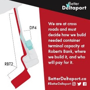 The “Better DeltaPort” Campaign is a movement that is lobbying for a something called “The Canadian DeltaPort Project”. It’s supposed to be a Global Container Terminals (GCT) smart, phased, and environmentally-conscious plan that will provide capacity at Roberts Bank in Delta through the addition of a fourth berth to the existing GCT Deltaport Terminal.