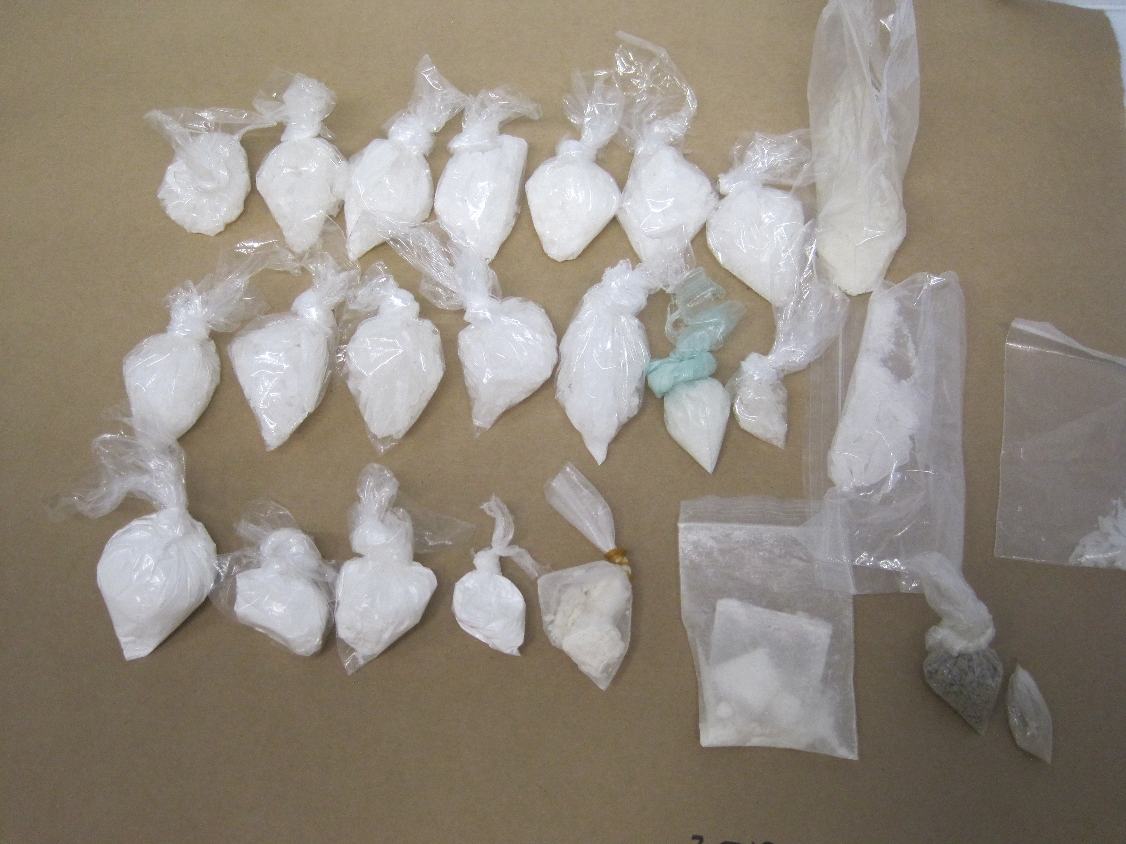 - Multiple packaged doses of suspected methamphetamine, cocaine, heroin and fentanyl.