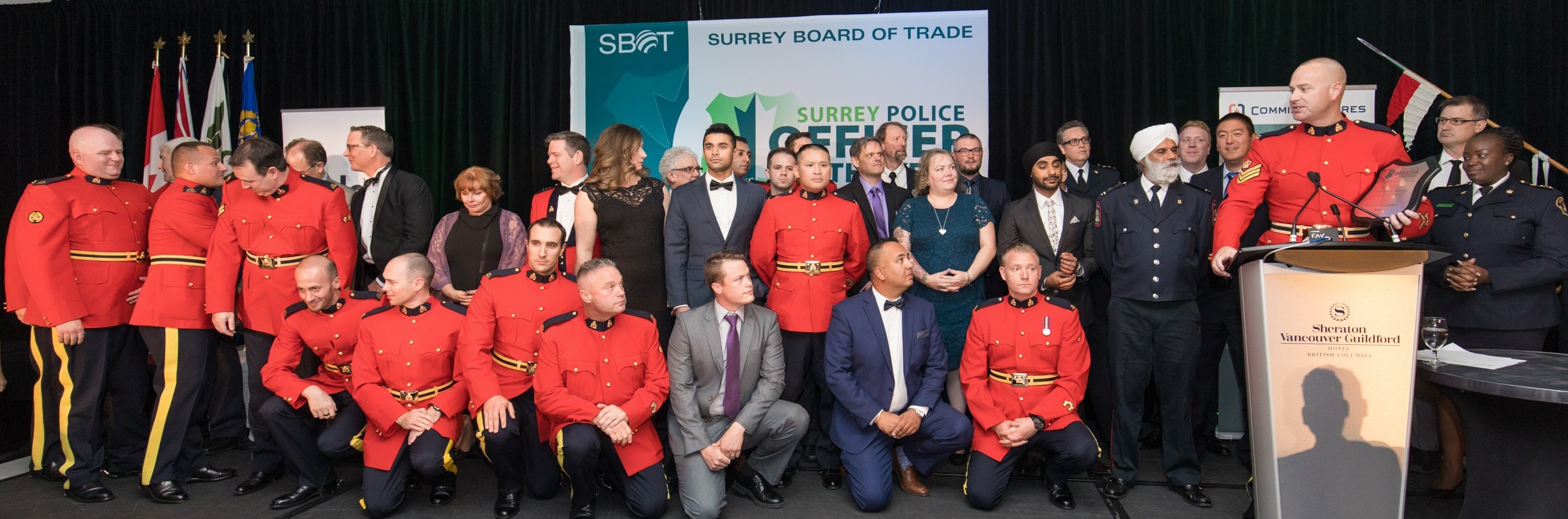 Surrey RCMP officers, auxiliaries, support staff, and volunteers were honoured at the Surrey Board of Trade’s 21st annual Police Officer of the Year Awards Thursday October 5 st for their exemplary service and commitment to making Surrey a safer place to live and do business.