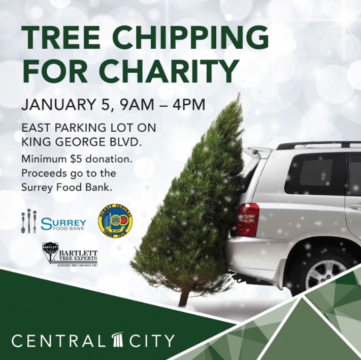 Tree Chipping for Charity is on this Sunday (Jan 5, 2020) from 9am to 4pm at the King George Blvd Parking lot of Central City Mall in Surrey.
